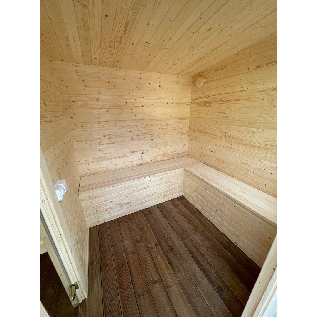 - The sauna is made of spruce wood;