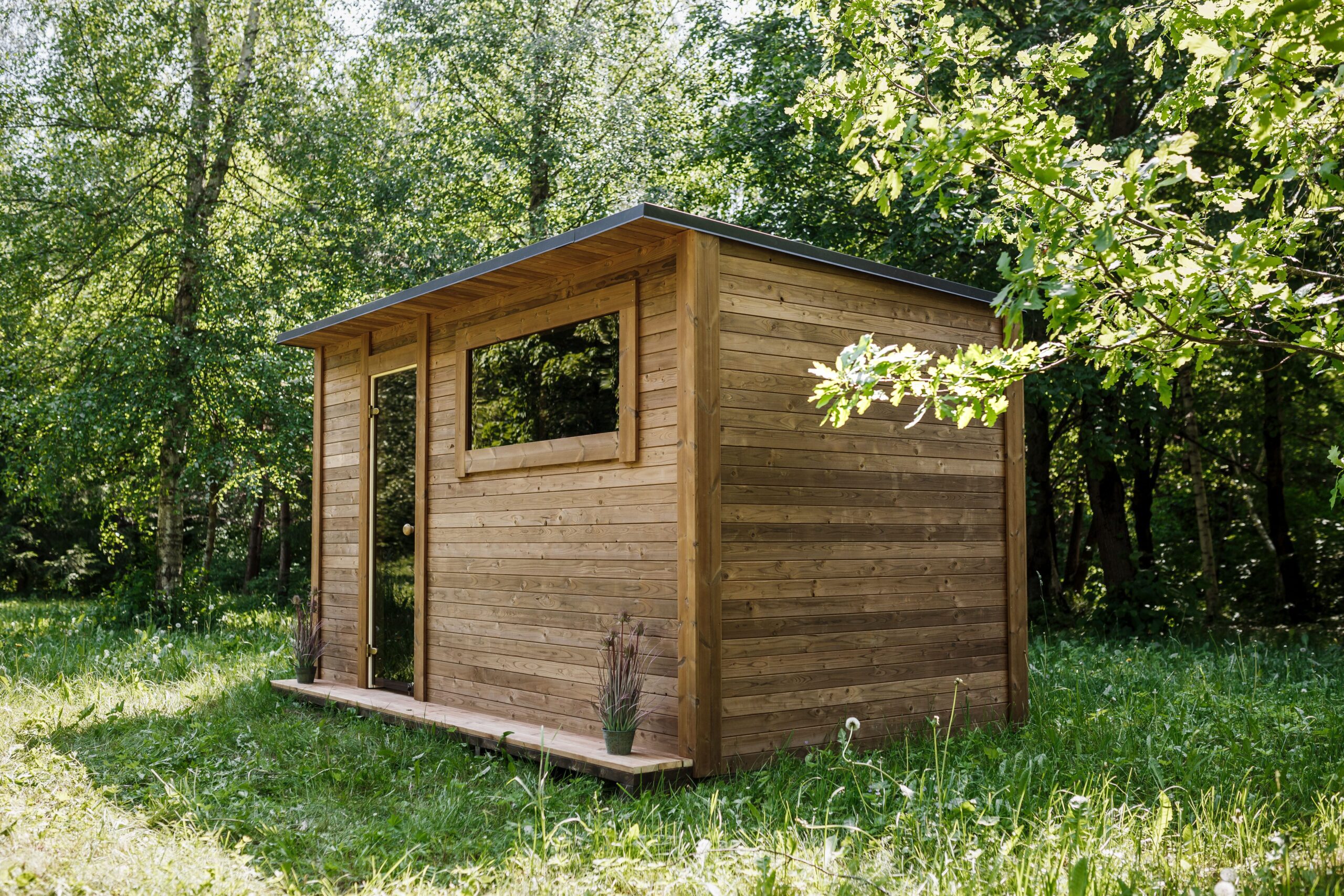Square 400x240cm sauna with pre-sauna – Painted wood